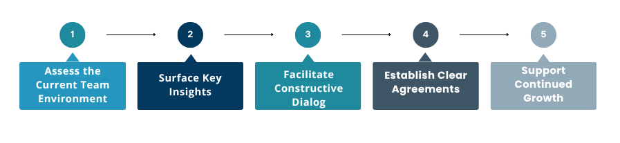 Support for teams working across departments to improve collaboration, manage conflict constructively, and improve outcomes